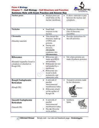 Cell Biology Summary Notes With Somaliland Form 4 Biology Past Exam P